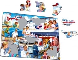 Odkryj świat szpitala z puzzlami planszowymi LARSEN, gdzie dzieci poznają pielęgniarki, lekarzy i pacjentów. Dzięki solidnej krawędzi i specjalnej podkładce układanie jest przejrzyste i przyjemne, co docenią także młodsze dzieci. Każdy element ma nieregularny kształt, bez klasycznych zamków – dokładnie tak, jakby obrazek był delikatnie „popękany”.