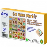 Detoa drewniane puzzle Co pasuje gdzie to gra dydaktyczna, która pomaga dzieciom rozpoznawać przedmioty i przyporządkowywać je do odpowiednich obrazków. Ta gra jest idealna do poprawy logicznego myślenia i pamięci u dzieci od 3 lat.