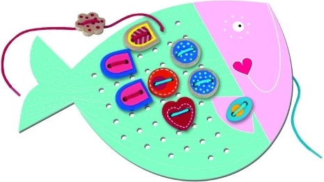 Kolorowa rybka, która wspiera dziecięcą kreatywność i prawidłowe trzymanie sznurówek podczas szycia.
