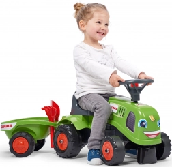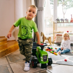 Uroczy zielony traktor – jeździk dla najmłodszych – wykonany jest z wysokiej jakości plastiku i jest stabilny oraz bezpieczny na pierwsze próby jazdy. Dzięki kompaktowym wymiarom i niskiej wadze łatwo się prowadzi, a skrętna przednia oś i kierownica z klaksonem gwarantują mnóstwo zabawy.