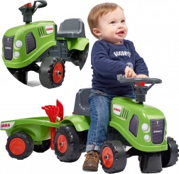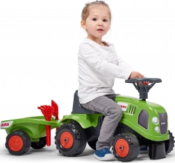 Odłączana przyczepka posłuży do przewożenia zabawek czy klocków, a dołączone akcesoria (grabki, łopatka, naklejki) wspierają kreatywną i odgrywaną zabawę. Jeździk pomaga rozwijać motorykę dużą, równowagę i koordynację, ucząc dzieci samodzielności.