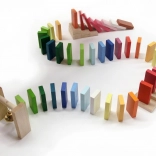 Detoa Dominowa ścieżka z dzwonkiem to zabawka edukacyjna i rozrywkowa dla dzieci od 3 lat. Zestaw 95 kolorowych drewnianych klocków wspiera kreatywność i małą motorykę, dając jednocześnie możliwość tworzenia różnych tras z unikalną bramką z dzwonkiem.