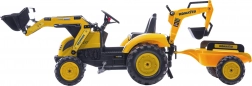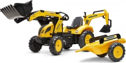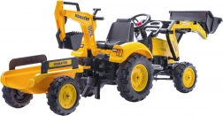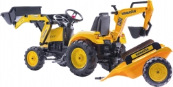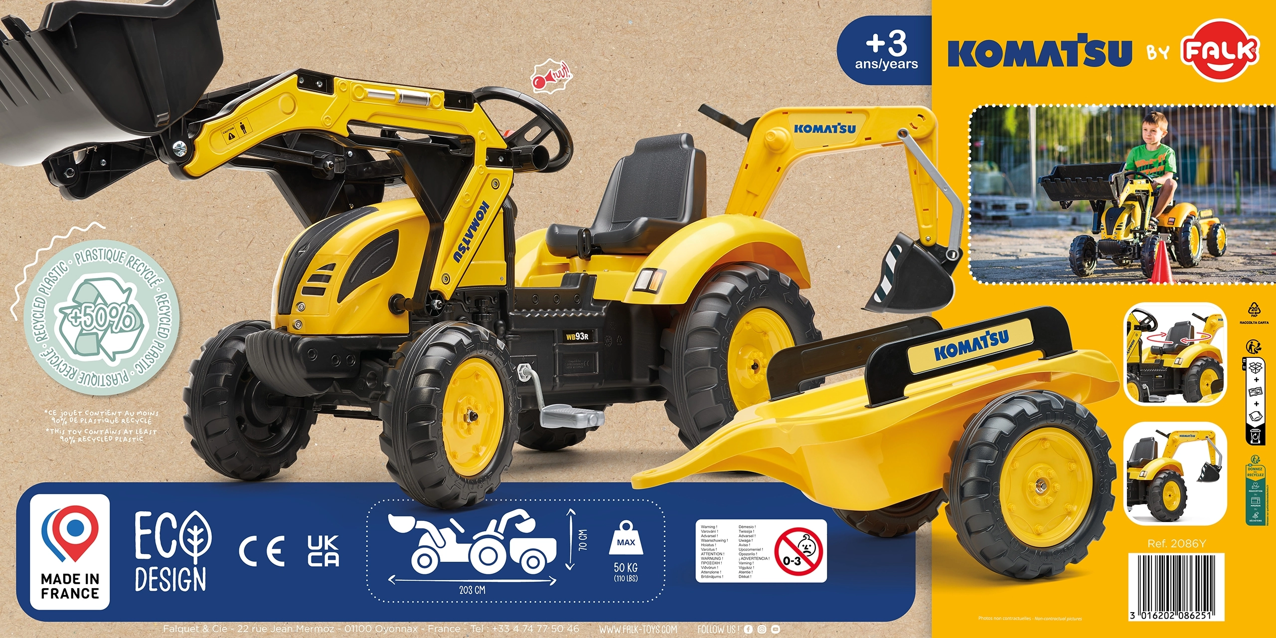 Podaruj dzieciom realistyczną zabawę budowlaną z traktorem na pedały FALK KOMATSU. Solidny pojazd z przednią łyżką, tylną koparką i odłączaną przyczepą jest wykonany z wysokiej jakości plastiku, oferuje napęd łańcuchowy, klakson oraz stabilną konstrukcję do bezpiecznej zabawy na zewnątrz i na podwórku.