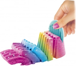 Po prostu wymieszaj piasek z magicznym żelem i zacznij tworzyć. Zestaw zawiera także różne akcesoria do formowania i dekoracji.