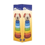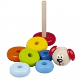 Piramida Piesek Detoa z drewnianych elementów wspiera rozwój drobnej motoryki i wyobraźni u dzieci już od 1 roku życia. Jest wyprodukowana zgodnie z rygorystycznymi normami bezpieczeństwa UE.