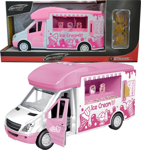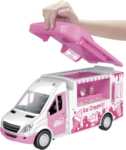 Różowy wóz z lodami 1:14 to świetna zabawka dla dzieci, które lubią bawić się w sklep i rozwijać wyobraźnię. Dzięki otwieranym drzwiom, zdejmowanemu dachowi i dopracowanemu wnętrzu dzieci przeżyją wiele scenariuszy – od obsługi klientów po jazdę po mieście.