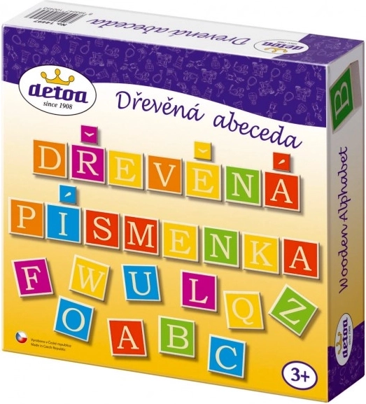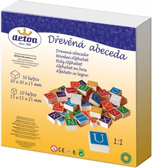 Drewniany alfabet od marki Detoa to edukacyjna zabawka dla dzieci od 3 roku życia, która pomaga w rozpoznawaniu liter i składaniu pierwszych słów. Wspiera rozwój drobnej motoryki rąk.