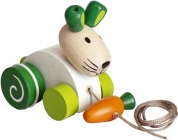 Ten drewniany króliczek do ciągnięcia motywuje dzieci do chodzenia i aktywnego ruchu. Dzięki gładkiemu wykończeniu i solidnej konstrukcji zabawka jest bezpieczna i przyjemna w dotyku. Marchewka przymocowana do sznurka dodaje zabawie uroku i pobudza dziecięcą wyobraźnię.