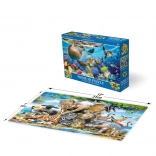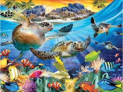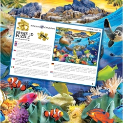 Odkryj magię przestrzennego układania z 3D puzzle Żółwia plaża. Specjalny efekt optyczny nadaje obrazowi głębię, dzięki czemu niektóre postacie lub przedmioty wydają się bardziej oddalone niż te na pierwszym planie. Dzieci podczas układania ćwiczą motorykę małą, cierpliwość i spostrzegawczość, a jednocześnie doświadczają radości z ukończonego obrazka.
