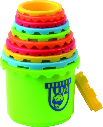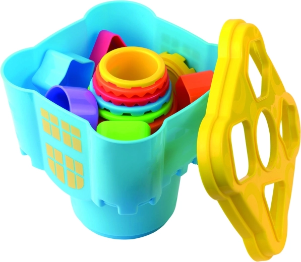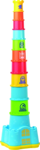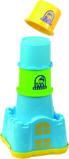 Układaj i sortuj kolory, rozmiary i liczby. Zbuduj wysoki zamek aż do 73 cm. Odwróć podstawę do góry dnem i masz wiaderko z sorterem – dopasuj kształty do odpowiednich otworów. Zestaw 18 szt.