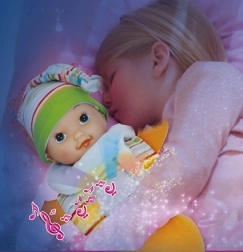 Interaktywne funkcje zaciekawią dzieci – lalka odtwarza delikatną muzykę i zapala światełka, dając jeszcze więcej radości z zabawy.