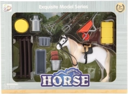 W zestawie znajduje się siodło i uzda, dzięki którym dzieci mogą odtwarzać jazdę konną oraz codzienną pielęgnację.