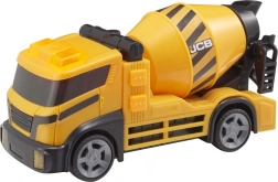 Ten mikser wygląda jak prawdziwa maszyna dzięki detalom takim jak obrotowy bęben, kółka i logo JCB.