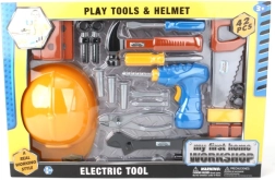 Kompletny dziecięcy zestaw dla małych majsterkowiczów zawiera 42 elementy narzędzi oraz ochronny kask budowlany dla autentycznej zabawy w naprawy i budowanie. Wspiera zwinność manualną, koordynację i kreatywność. Wybrane funkcje działają na 2× baterie AA (brak w zestawie). Odpowiedni dla dzieci od 3 lat – świetny prezent dla małych mistrzów i kreatywnych budowniczych.
