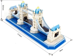 Baw się mądrze i odkrywaj piękno światowej architektury. Puzzle 3D CubicFun Tower Bridge wiernie przedstawiają słynny most zwodzony w Londynie. Dzięki solidnemu materiałowi (ok. 3 mm pianki z laminowanym nadrukiem) model dobrze trzyma kształt i po złożeniu efektownie prezentuje się na półce lub biurku.
