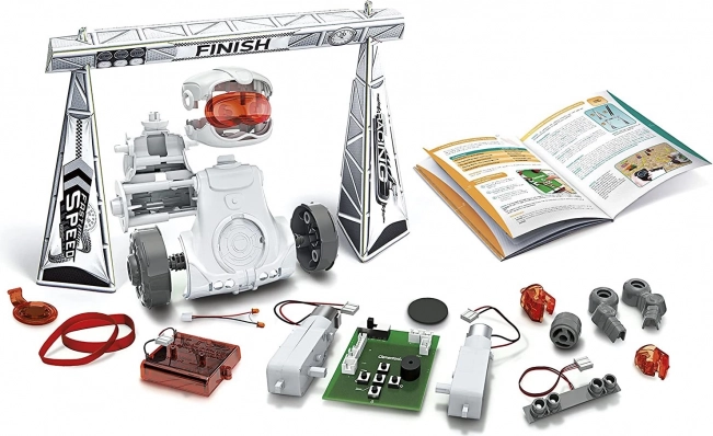- Płytka drukowana, silniki elektryczne, czujniki IR, mikrofon, koszyk na baterie, LED, magnes, opony, głowa, korpus, ręce, koła, uchwyt na magnes, uchwyt na marker, śrubki, tarcza, ilustrowana instrukcja (CZ/SK/PL/HU)