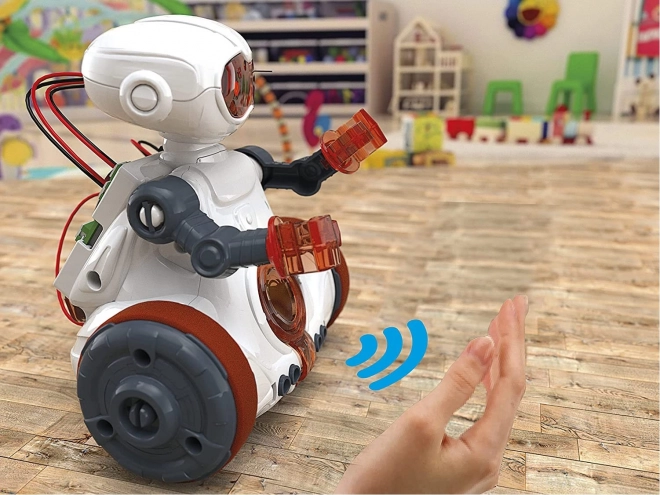 Dwa czujniki podczerwieni umożliwiają omijanie przeszkód i podążanie za dłonią, a mikrofon reaguje na klaśnięcie. Dzięki temu zabawa jest naturalnie interaktywna i angażująca.
