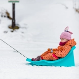 Ergonomicznie ukształtowane siedzisko z powierzchnią antypoślizgową oferuje wygodę nawet podczas dłuższego saneczkowania.