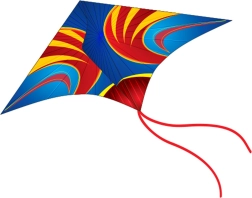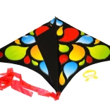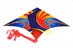 Latający smok o wymiarach 61 x 114 cm to zabawka dla dzieci i dorosłych, dostępna w dwóch kolorach: czarnym i niebieskim.
