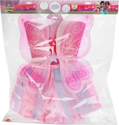 Duże różowe skrzydła z białymi wzorami przypominają prawdziwego motyla. Idealne do kostiumów i gier przebierankowych.