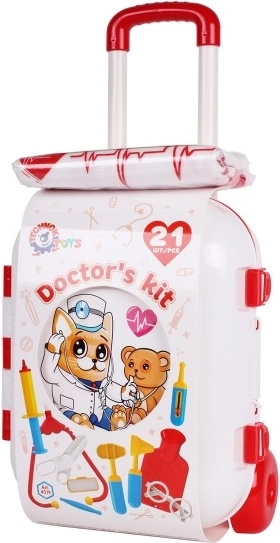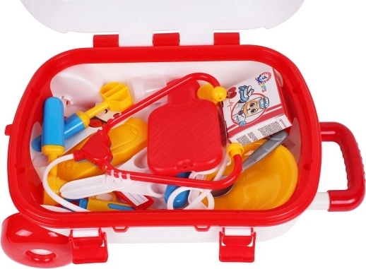 Wybierz się ze swoimi dziećmi na medyczną misję z tym mobilnym zestawem lekarskim, który zawiera 21 sztuk narzędzi medycznych i jest łatwy w przenoszeniu dzięki kółkom i wysuwanej rączce.