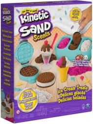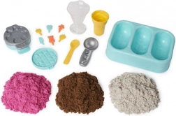 Specjalna formuła Kinetic Sand łatwo się ugniata, tnie i formuje – idealna do realistycznych gałek lodów i deserów.