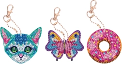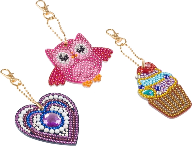 Ten zestaw pozwala stworzyć trzy różne breloczki w kształcie sowy, lodów i serca. Każdy breloczek jest ozdobiony kolorowymi kamyczkami, które nadadzą Twoim kluczom niepowtarzalny styl.