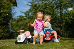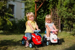 W zestawie znajdują się dwie różne naklejki na przednią część, dzięki którym dziecko może zaprojektować traktor według własnego gustu.