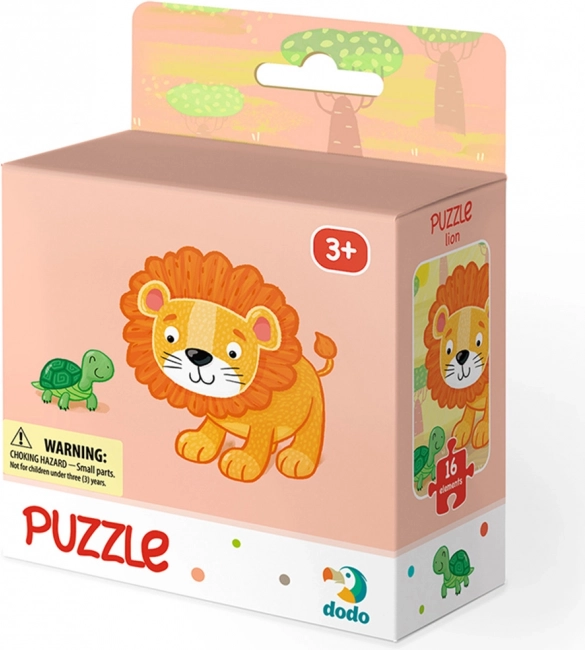 Zabawne puzzle dla dzieci z motywem lwa ucieszą małych konstruktorów od 3 lat. Zawiera 16 elementów, a po ułożeniu ma wymiary 22 × 22 cm – idealne na pierwsze układanki oraz rozwój małej motoryki i logicznego myślenia.