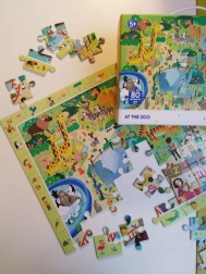 Ta kolorowa układanka ze zwierzętami z zoo oferuje dzieciom nie tylko radość z układania, ale także dodatkową aktywność: po ukończeniu obrazka mogą zagrać w „Znajdź i szukaj” i odkrywać rozmieszczenie poszczególnych zwierząt. Idealna do rozwijania uwagi, koordynacji oko–ręka oraz słownictwa.