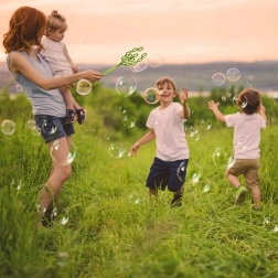 Wypróbuj efekt dużych baniek oraz gęsty deszcz mini banieczek – po prostu wymień obręcz. Maksymalna różnorodność zabawy dla każdego dziecka.