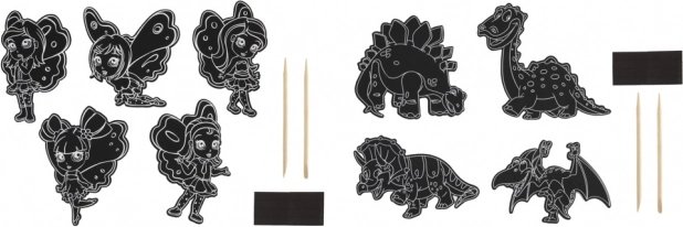 Ten zabawny i kreatywny zestaw zapewnia godziny twórczej zabawy dla małych i dużych. Wystarczy delikatnie zeskrobać wierzchnią warstwę, aby odkryć kolorowe motywy wróżek lub dinozaurów. Gotowe prace bez trudu umieścisz na lodówce lub innej metalowej powierzchni, ozdabiając dom oryginalnymi magnesami.