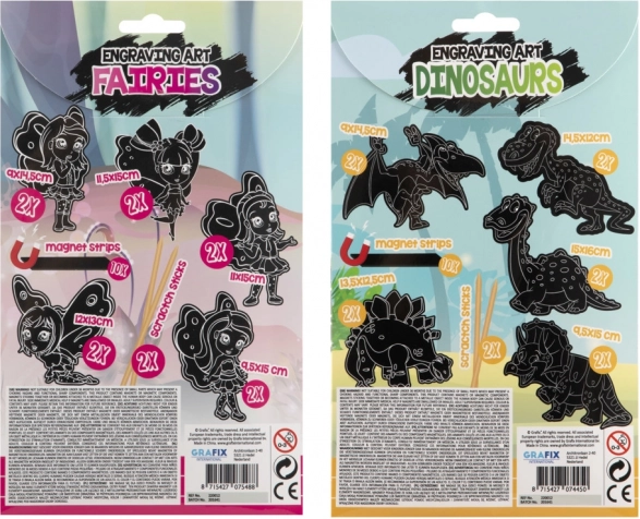Odkryj kreatywny zestaw dla dzieci i dorosłych: magnesy do wydrapywania z motywami wróżek i dinozaurów. W opakowaniu znajdziesz 10 szt. magnesów oraz 2 skrobaczki ułatwiające tworzenie. Gotowe magnesy przymocujesz do dowolnej metalowej powierzchni – lodówki, tablicy magnetycznej czy szafki.