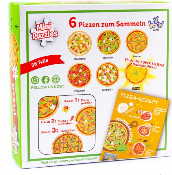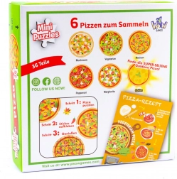 Te oryginalne i zabawne puzzle z pizzą oferują różne motywy, takie jak z pieczarkami, wegetariańska, meksykańska, z papryczkami chili oraz inne ulubione smaki. Każde opakowanie zawiera: