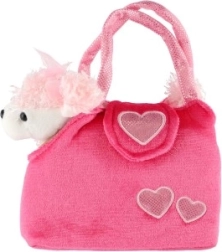 Wesoła różowa torebka z serduszkami i miękki piesek z kokardką ucieszą każdą małą miłośniczkę zwierząt.