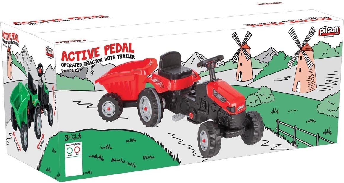 Traktor na pedały Pilsan w atrakcyjnym czerwonym kolorze zapewnia dzieciom autentyczne wrażenia z jazdy. Stabilna konstrukcja, wygodne siedzisko i dołączana przyczepa czynią z tej zabawki świetnego towarzysza do ogrodu, na plac zabaw i podwórko. Dzięki łatwemu sterowaniu kierownicą dzieci doświadczą realistycznego „prowadzenia” i mnóstwa bezpiecznej zabawy.