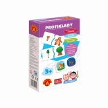 Zabawa edukacyjna dla najmłodszych, która uczy dzieci rozumieć przeciwieństwa za pomocą dużych, dwuczęściowych kart. Dzięki unikalnemu kształtowi łączenia dzieci od razu wiedzą, czy znalazły właściwą parę. Rozwija słownictwo, logiczne myślenie, koncentrację oraz motorykę małą.