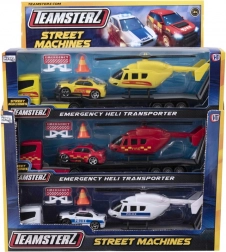 Przedstawiamy Państwu Teamsterz transport aut i helikoptery, doskonały zestaw dla małych entuzjastów transportu i akcji ratunkowych. Każdy zestaw zawiera ciężarówkę, która transportuje auto i helikopter. Dostępne w trzech różnych kolorach - czerwonym, żółtym i białym.
