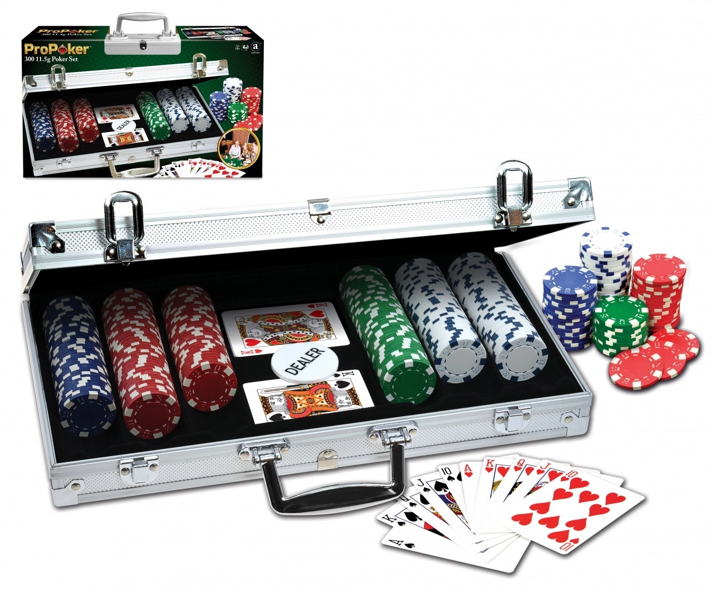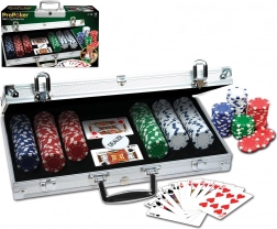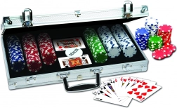 Kompletny zestaw pokerowy w eleganckiej aluminiowej walizce do domowych turniejów i zabawy z przyjaciółmi. Zawiera 300 wysokiej jakości żetonów o masie 11,5 g w 4 kolorach z symbolami kości, idealny dla autentycznych wrażeń z gry.