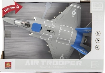 Ten plastikowy myśliwiec jest idealną zabawką dla małych żołnierzy i pilotów. Wykonany z wysokiej jakości materiałów, przeznaczony dla dzieci od 3 lat. Dzięki swoim realistycznym efektom świetlnym i dźwiękowym dostarcza mnóstwo zabawy.