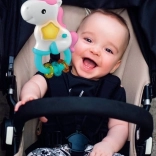 Zabawka wykonana jest z nietoksycznych i wytrzymałych materiałów oraz dopasowana do małych dziecięcych rączek. Praktyczne kółeczko i pętelka umożliwiają szybkie zawieszenie na łóżeczku, wózku i foteliku samochodowym, dzięki czemu zabawa i stymulacja zmysłów mogą trwać wszędzie.