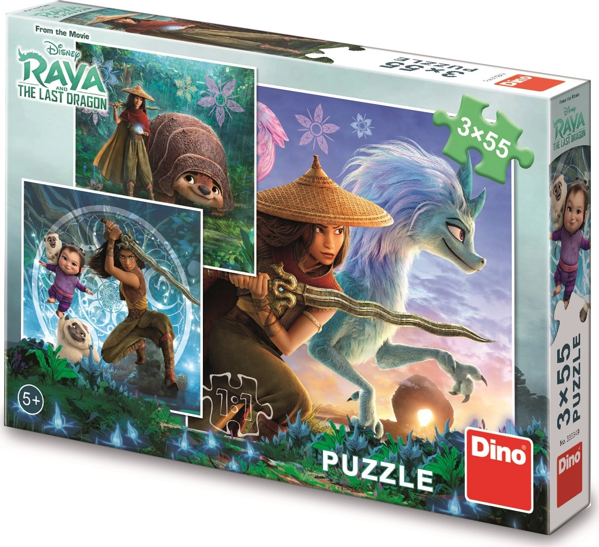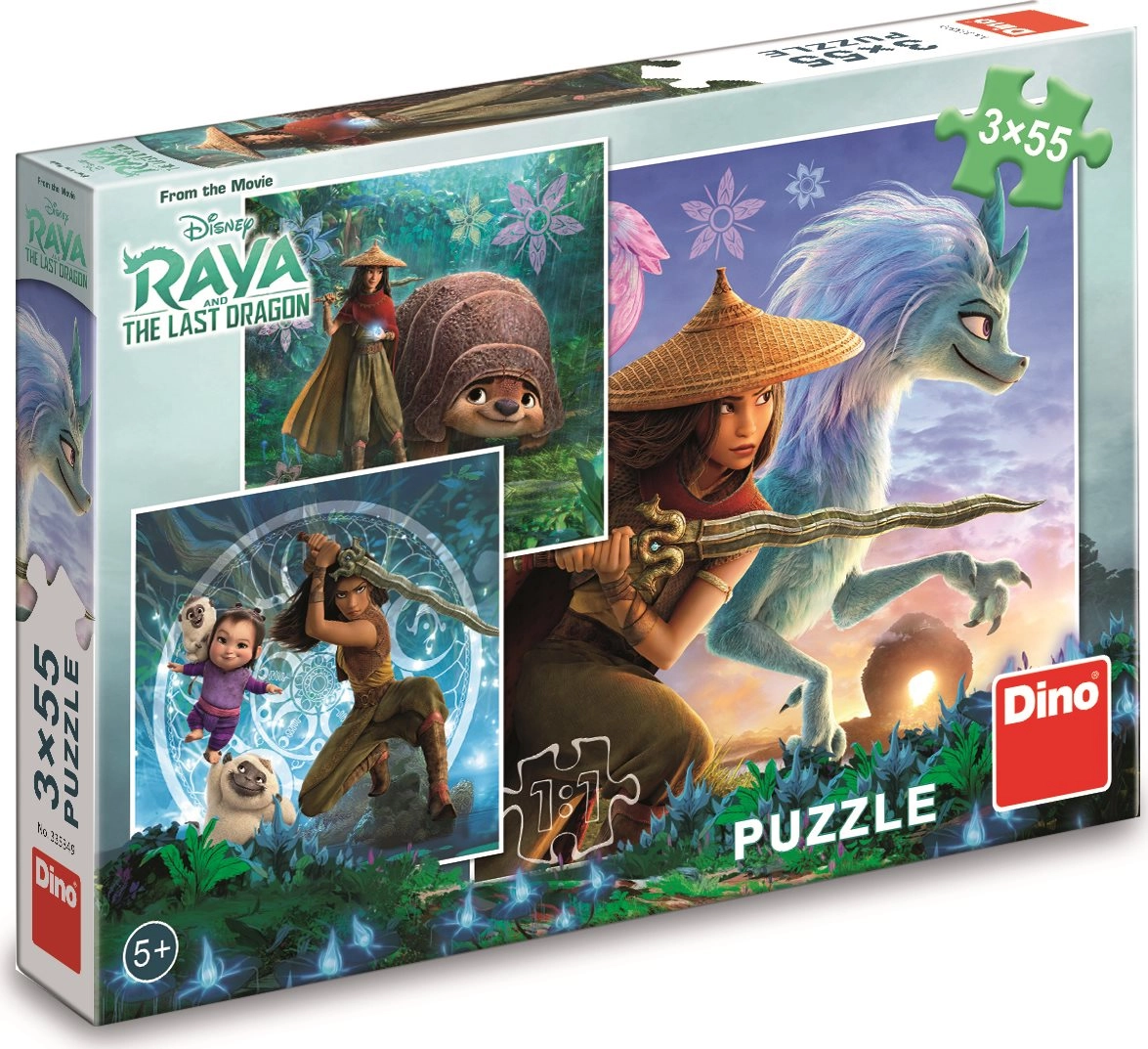 Ten wspaniały zestaw puzzli zawiera trzy układanki, każdą z 55 elementów, które zachwycą dzieci od 5. roku życia. Dzieci mogą zanurzyć się w świecie bohaterki Rayi, wiernego smoka Sisu oraz przyjaciela Tuk Tuka. Układanki wykonane są z trwałej i bezpiecznej tektury, odpornej nawet na intensywniejsze użytkowanie.
