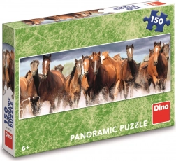 Dzięki tej zachwycającej panoramicznej układance dzieci nie tylko poćwiczą koncentrację i wyobraźnię przestrzenną, ale też zyskają piękną dekorację do pokoju. Puzzle z motywem koni galopujących w wodzie zawierają 150 elementów, które po ułożeniu można na stałe podkleić i powiesić na ścianie.