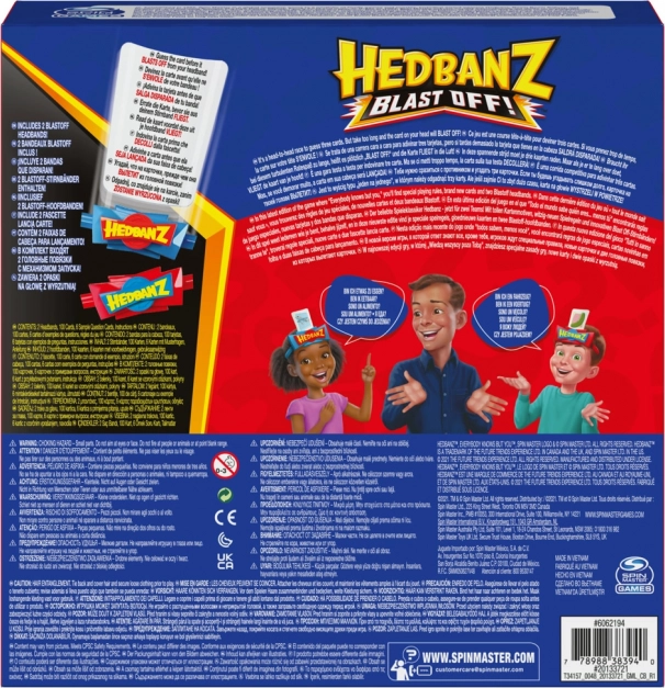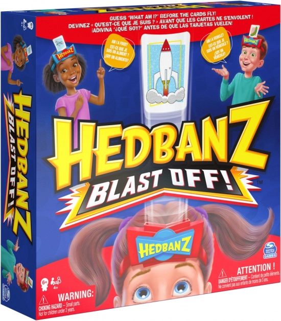Hedbanz Blast Off! to idealny wybór na rodzinne wieczory i przyjęcia dla dzieci. Regulowane opaski pasują mniejszym i większym graczom, a karty obrazkowe sprawiają, że gra jest niezależna językowo. Każdy gracz ma swoje żetony i stara się odgadnąć za pierwszym razem.