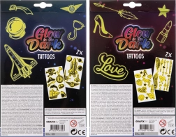 Ten zestaw świecących tatuaży jest idealny dla dziewczynek, które chcą dodać iskrę swojemu stylowi. Korzystaj z różnych motywów dostępnych w opakowaniu, które zawiera dwa arkusze tatuaży. Po prostu wytnij, przyłóż na skórę, zwilż gąbką i gotowe! Użytkowanie jest szybkie i zabawne.