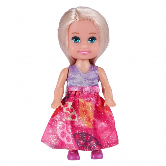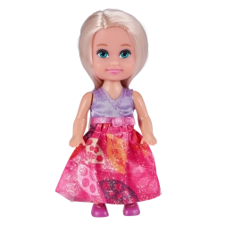 Lalka ma kolorową, błyszczącą sukienkę z kwiatowymi detalami, która rozświetli każdą dziecięcą kolekcję i pobudzi fantazję podczas zabawy.