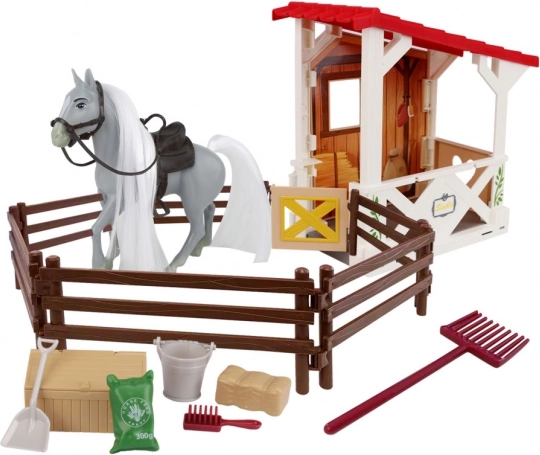 - Stajnia, zagroda, figurka konika, karma i narzędzia do pielęgnacji