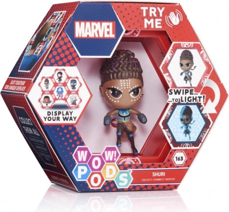 Rozszerz swoją kolekcję o ikoniczną bohaterkę Shuri w wyjątkowym podświetlanym podzie WOW POD. Zintegrowany czujnik podczerwieni zapewnia automatyczne włączanie światła przy wykryciu ruchu, dzięki czemu figurka wyróżnia się zarówno w dzień, jak i w nocy. Idealna na półkę, biurko lub do pokoju dziecięcego.