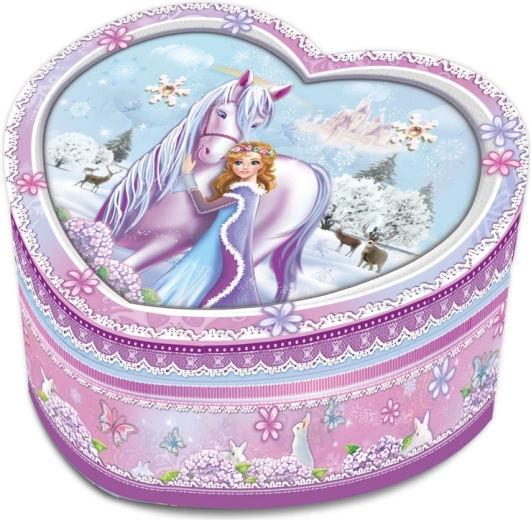 Pozytywka–szkatułka z jednorożcem na nakręcanie, muzyczne pudełko z lusterkiem i szufladką 16 × 10 × 12 cm