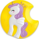 Pudełko zaprojektowane w kształcie jednorożca ze złotą koroną, co wprowadza zabawę i styl.